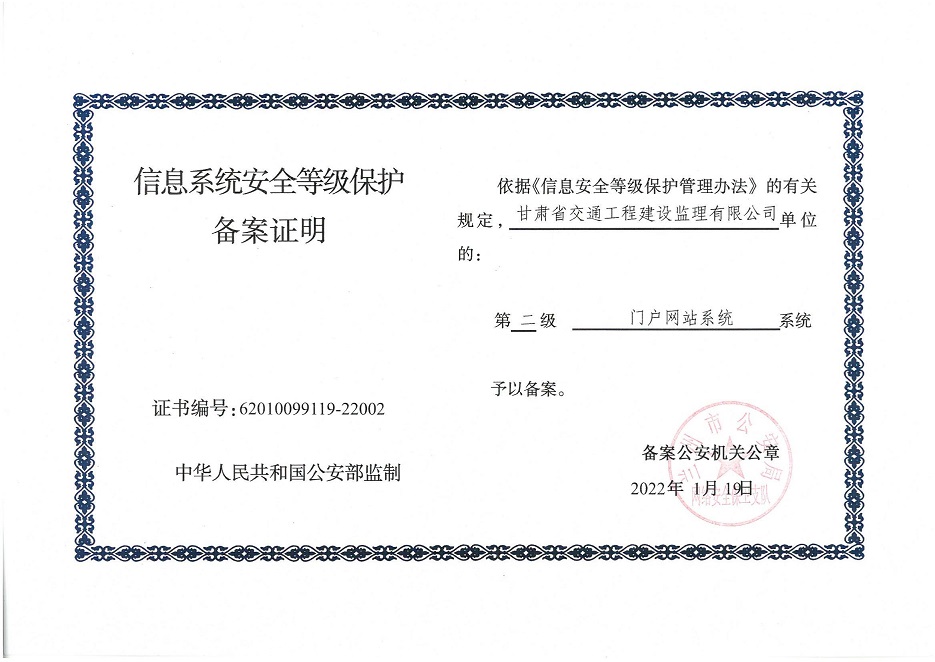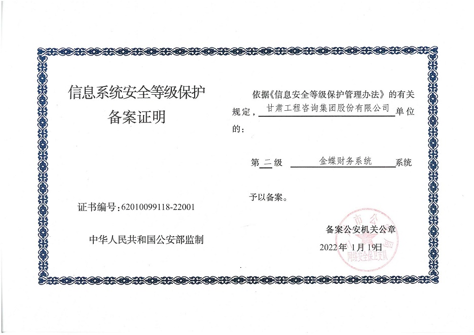 自工作開展以來,相關(guān)子公司積極貫徹落實集團(tuán)公司工作舉措,集團(tuán)本部、建筑設(shè)計院、水電設(shè)計院、土木工程院、招標(biāo)咨詢集團(tuán)、交通監(jiān)理公司合計16個信息系統(tǒng)已順利完成信息系統(tǒng)安全等級保護(hù)2.0測評備案工作,并獲得監(jiān)管部門頒發(fā)的《信息系統(tǒng)安全等級保護(hù)備案證明》。通過此次等級保護(hù)2.0測評工作,集團(tuán)公司網(wǎng)絡(luò)和重要的信息數(shù)據(jù)系統(tǒng)的安全防護(hù)和保障能力得到進(jìn)一步提升,為推動集團(tuán)公司數(shù)字化轉(zhuǎn)型工作打下堅實的基礎(chǔ)。