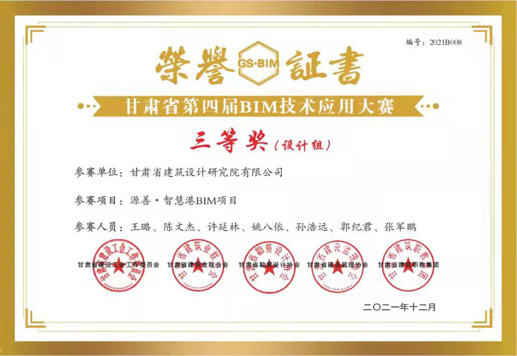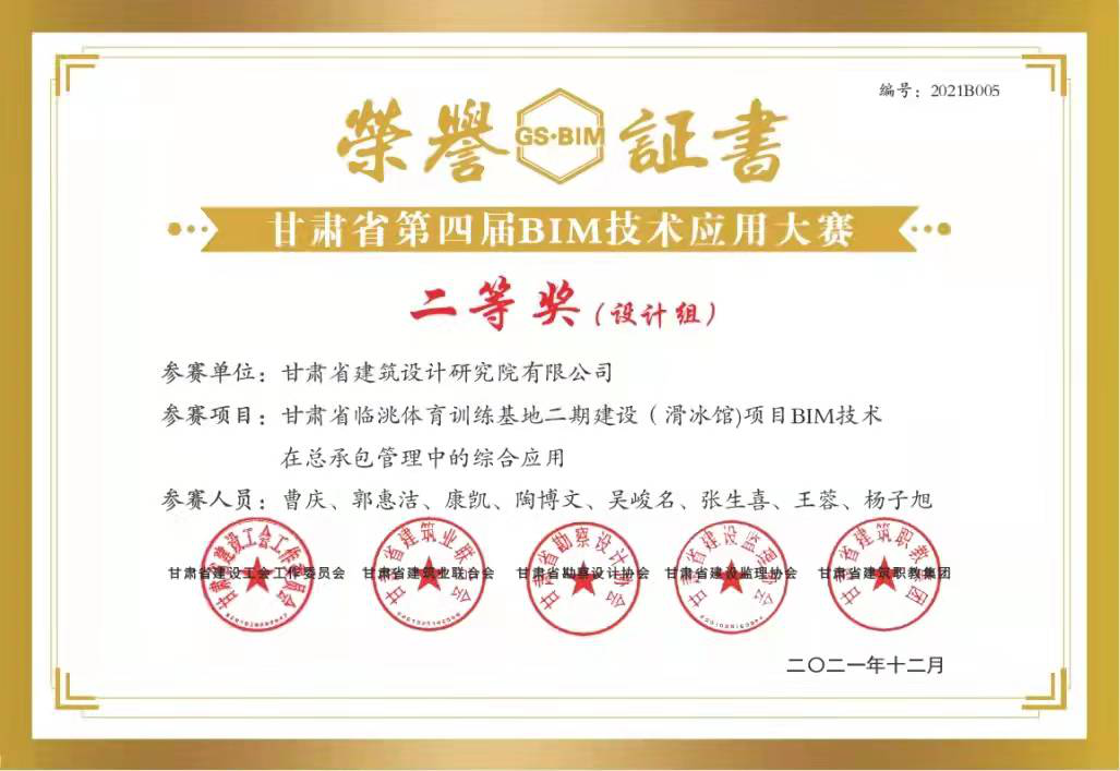 日前,甘肅省建設(shè)工會工作委員會、甘肅省建筑業(yè)聯(lián)合會、甘肅省勘察設(shè)計協(xié)會、甘肅省建設(shè)監(jiān)理協(xié)會、甘肅省建筑職教集團聯(lián)合舉辦的“2021年甘肅省職工職業(yè)技能競賽暨甘肅省第四屆BIM技術(shù)應(yīng)用大賽”評選結(jié)果揭曉,甘肅省城鄉(xiāng)規(guī)劃設(shè)計研究院有限公司“BIM技術(shù)正向設(shè)計在蘭州中川國際機場三期擴建工程航站區(qū)附屬用房工程項目中的應(yīng)用”獲得“BIM技術(shù)應(yīng)用作品征集”比賽設(shè)計組一等獎;甘肅省建筑設(shè)計研究院有限公司“甘肅省臨洮體育訓(xùn)練基地二期建設(shè)(滑冰館)項目BIM技術(shù)在總承包管理中的綜合應(yīng)用”獲得二等獎,“緣善智慧港BIM項目”獲得三等獎;甘肅省建設(shè)監(jiān)理有限責(zé)任公司李燕燕獲得“BIM技術(shù)技能比賽”三等獎。