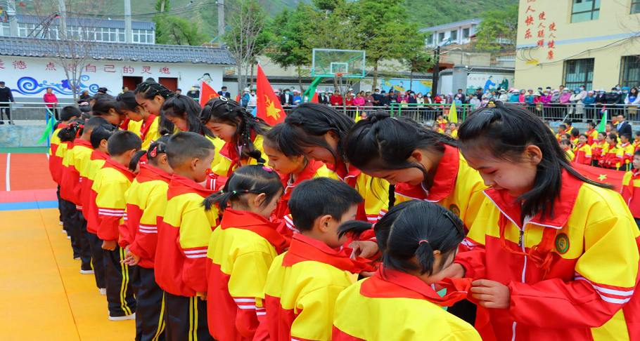活動現(xiàn)場,在莊嚴(yán)激昂的國歌聲中舉行了升國旗儀式。簡單而又隆重的入隊儀式上,鮮紅的隊旗迎風(fēng)飄揚,隨著入隊隊員名單的宣布,許多一年級的同學(xué)成為了光榮的中國少年先鋒隊隊員,并由高年級的少先隊員為他們戴上了鮮艷的紅領(lǐng)巾。隨后,大隊輔導(dǎo)員帶領(lǐng)新隊員宣誓,響亮的呼號聲“時刻準(zhǔn)備著”響徹校園上空,集中展示了新時代少先隊員積極向上的精神風(fēng)貌,全體師生為他們送上最深的祝福。最后,新隊員代表發(fā)言,標(biāo)準(zhǔn)的隊禮、堅定的眼神、稚嫩的聲音表達了最大的決心,號召全體新隊員要在星星火炬的指引下刻苦讀書,從小聽黨話、感黨恩、跟黨走,努力成長為中國特色社會主義事業(yè)建設(shè)者和接班人。