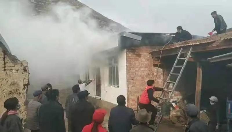 聽(tīng)到村民們的呼救聲,正在村口疫情防控監(jiān)測(cè)點(diǎn)值守的幫扶工作隊(duì)隊(duì)員、包村干部與鎮(zhèn)領(lǐng)導(dǎo)、村“兩委”干部及志愿者一起,第一時(shí)間沖向了火災(zāi)現(xiàn)場(chǎng),實(shí)施開(kāi)展撲救工作?,F(xiàn)場(chǎng)火勢(shì)兇猛,盡管眾人一起用水傾澆,卻仍未阻止火勢(shì)蔓延。瞬間,屋頂?shù)臋M梁也燒著了,發(fā)出噼啪的響聲,房頂隱約在搖晃,可大家依然奮不顧身地救火,甚至有人沖上了危險(xiǎn)的屋頂。