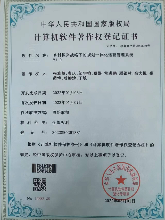 近日,從國家版權局傳來好消息,甘肅省建筑設計研究院有限公司自主研發(fā)的“鄉(xiāng)村振興戰(zhàn)略下的規(guī)劃一體化運營管理系統(tǒng)V1.0”,獲得國家版權局頒發(fā)的計算機軟件著作權登記證書。