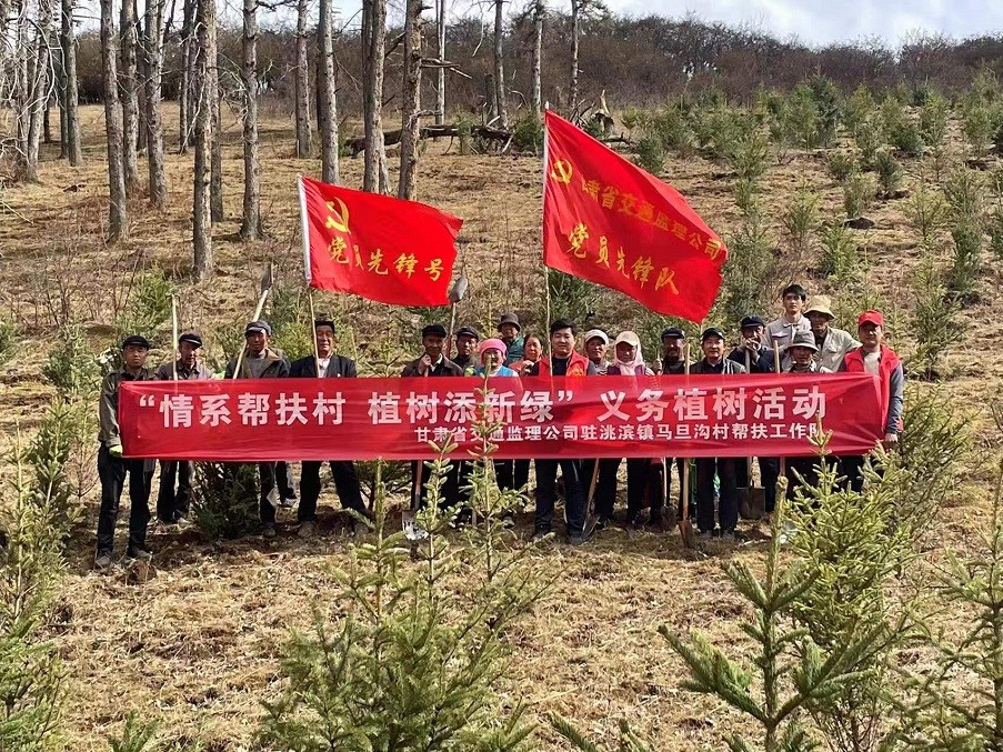 為積極響應習近平總書記“全社會都做生態文明建設的實踐者、推動者,讓祖國天更藍、山更綠、水更清、生態環境更美好”的號召,以打造“五無甘南”,創建“十有家園”為目標,加快推進鄉村振興戰略實施,共建生態宜居宜業的美麗鄉村,近日,甘肅省交通工程建設監理有限公司駐臨潭縣洮濱鎮馬旦溝村幫扶工作隊積極發揮自身職能,協同包村干部、村“兩委”成員、駐村黨員、義務志愿者及群眾代表等開展義務植樹活動。