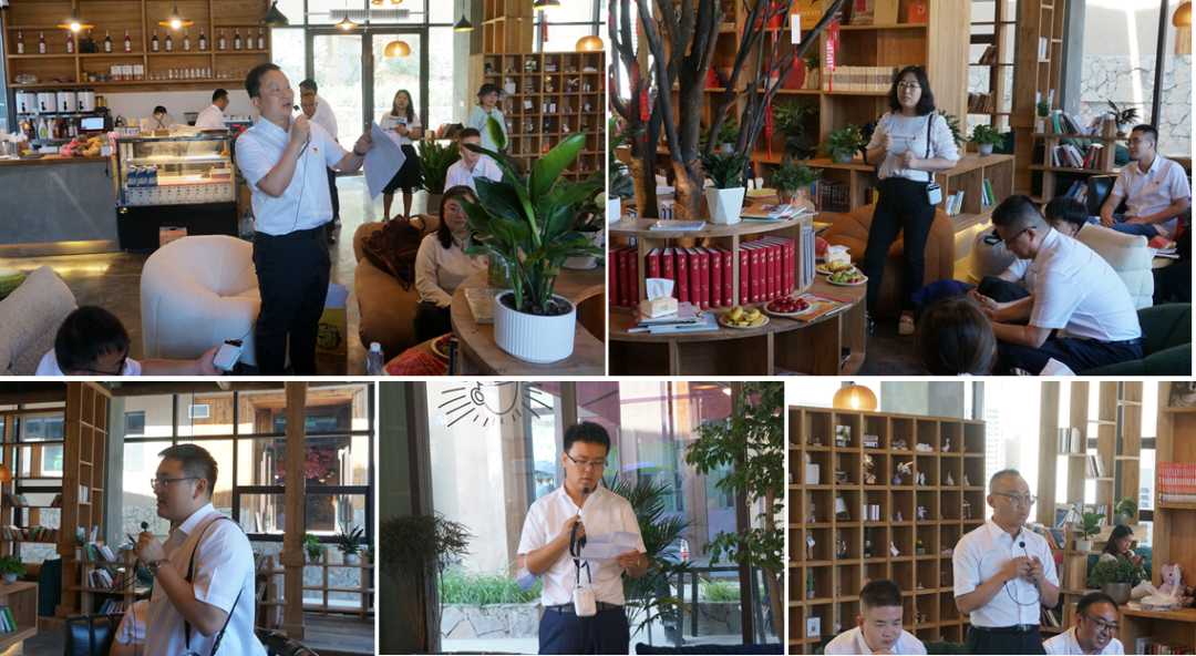 在棲云小鎮(zhèn)書吧開展的“一心永向黨,喜迎二十大”的交流研討會上,羅堯同志代表第五黨支部作主題發(fā)言。他首先對參加本次主題黨日活動的同志們表示歡迎和感謝,然后為大家深入講解并解讀了我省第十四次黨代會提出的“一核三帶”省域發(fā)展新藍圖和“四強”行動相關(guān)要點,并倡議每一位規(guī)劃工作從業(yè)者應(yīng)當加強政治學(xué)習(xí),提高政治站位,在全面把握全省重大政治任務(wù)的前提下,與時俱進,緊密聯(lián)系實際開展規(guī)劃設(shè)計工作,并著眼長遠、聚焦重點,充分發(fā)揮技術(shù)優(yōu)勢,助力全面推進甘肅經(jīng)濟社會高質(zhì)量發(fā)展。黨委辦公室主任樊曉丹同志作了“高度重視黨建工作,推動黨建工作和業(yè)務(wù)工作深度融合”的主題發(fā)言。她首先肯定了第五黨支部一直以來在黨建工作中取得的成績,并鼓勵支部應(yīng)當百尺竿頭更進一步,積極打造黨建品牌,不斷提升基層黨建工作的引領(lǐng)力、號召力和吸引力。團委書記劉斌同志以《回顧百年團史,匯聚青春力量》為題,講授了一堂生動的黨課,帶領(lǐng)大家一起走進百年團史,追尋信仰之光,勇?lián)啻菏姑h廣大團員應(yīng)當緊跟黨走,擔時代之責(zé),做新征程的奮進者、開拓者和奉獻者,傳遞青春力量,綻放青春芳華,用青春和熱血書寫新時代壯麗篇章。其他黨員及入黨積極分子也從自身學(xué)習(xí)和工作實際出發(fā),分別就基層黨建、政治理論學(xué)習(xí)、黨員先鋒模范作用發(fā)揮等方面交流了各自的所思所感。