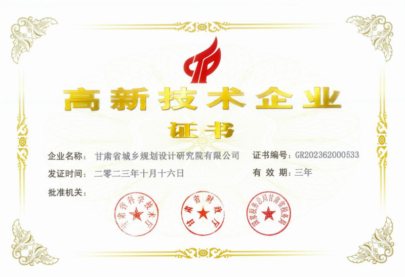 近日,經(jīng)過嚴(yán)格的審批程序,省規(guī)劃設(shè)計(jì)院申報(bào)的國家高新技術(shù)企業(yè)最終通過認(rèn)定并獲得由省科學(xué)技術(shù)廳、省財(cái)政廳和國家稅務(wù)總局甘肅省稅務(wù)局聯(lián)合頒發(fā)的“高新技術(shù)企業(yè)證書”(證書編號(hào):GR202362000533)。