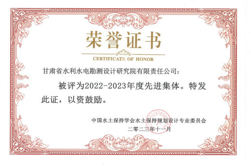 11月5日至7日,中國水土保持學會2023年年會暨學術研討會在蘭州召開。省水電設計院榮獲中國水土保持學會2022-2023年度“先進集體”稱號,水保設計咨詢公司王向明榮獲“先進個人”稱號。1篇論文獲優秀論文獎。